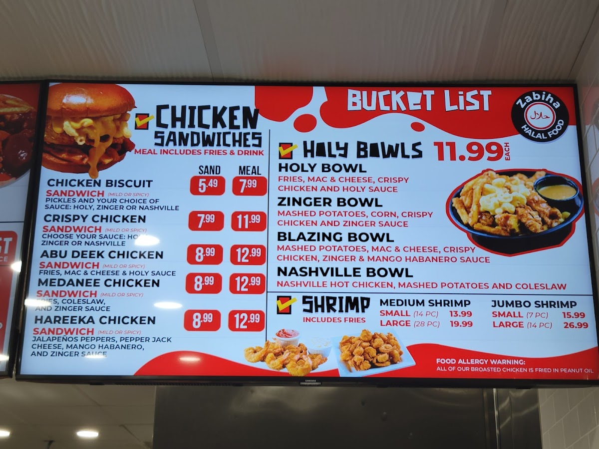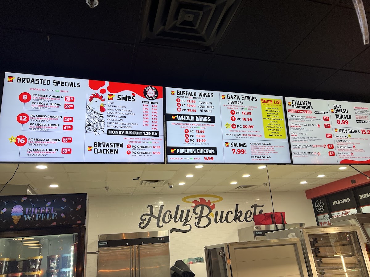 Start with the Holy Chicken Sandwich featuring crispy breading and signature holy sauce for just $13.79, or indulge in the tantalizing Nashville Chicken Sandwich at $15.59. Wrap lovers will adore the Holy Twister Wrap bursting with crispy chicken and fresh veggies.